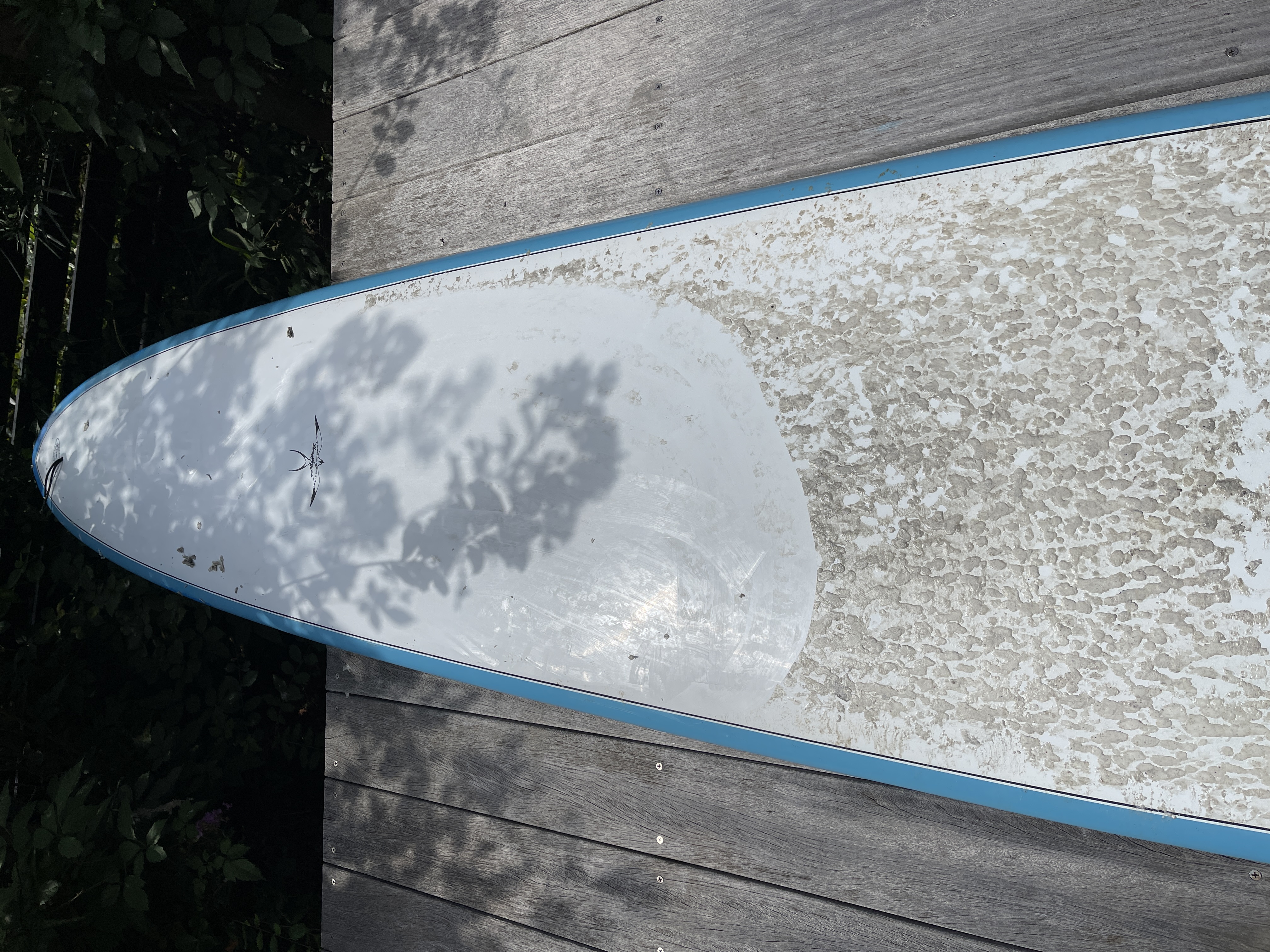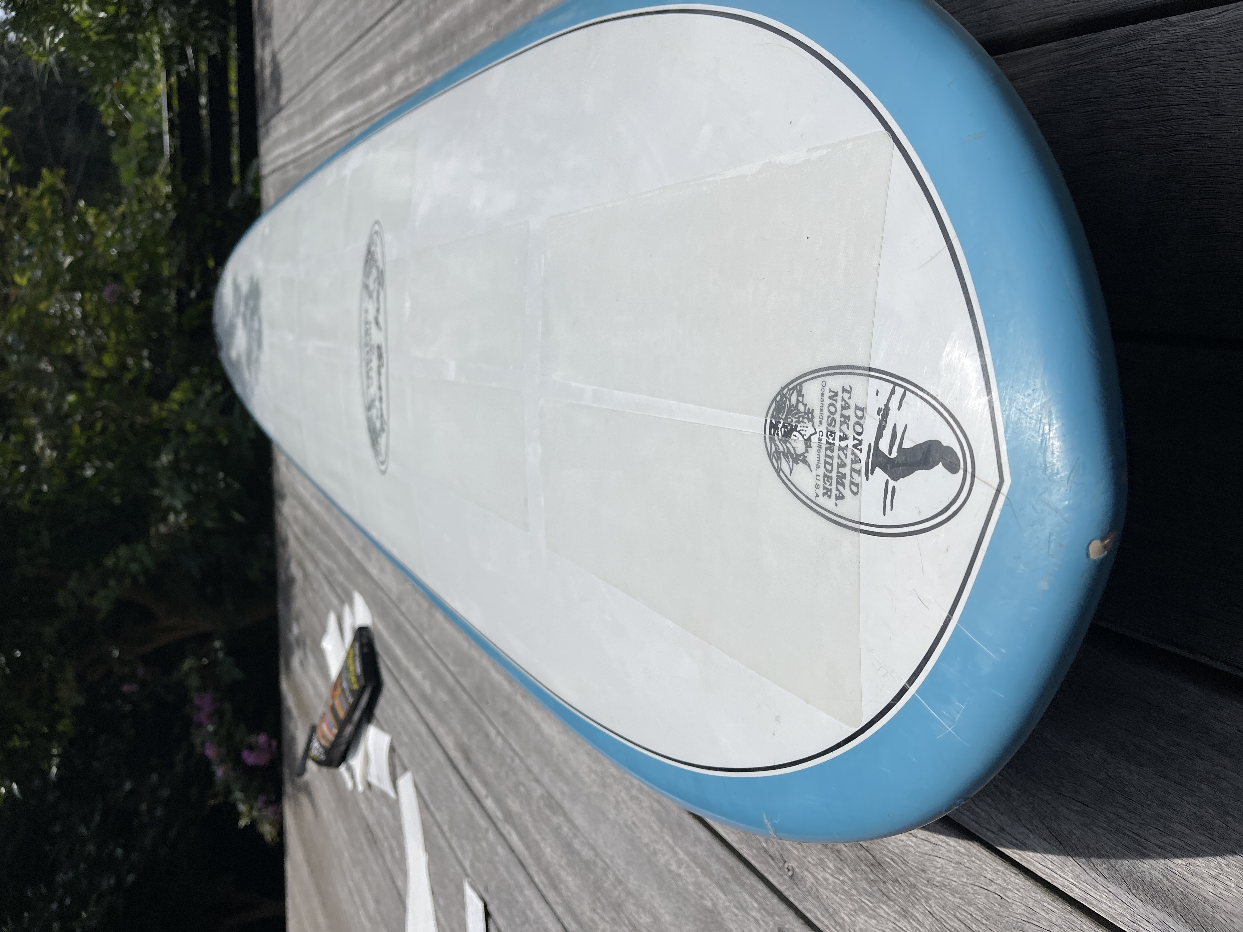 まずは日向にボードを出して、ワックスを解けやすくしておきます。