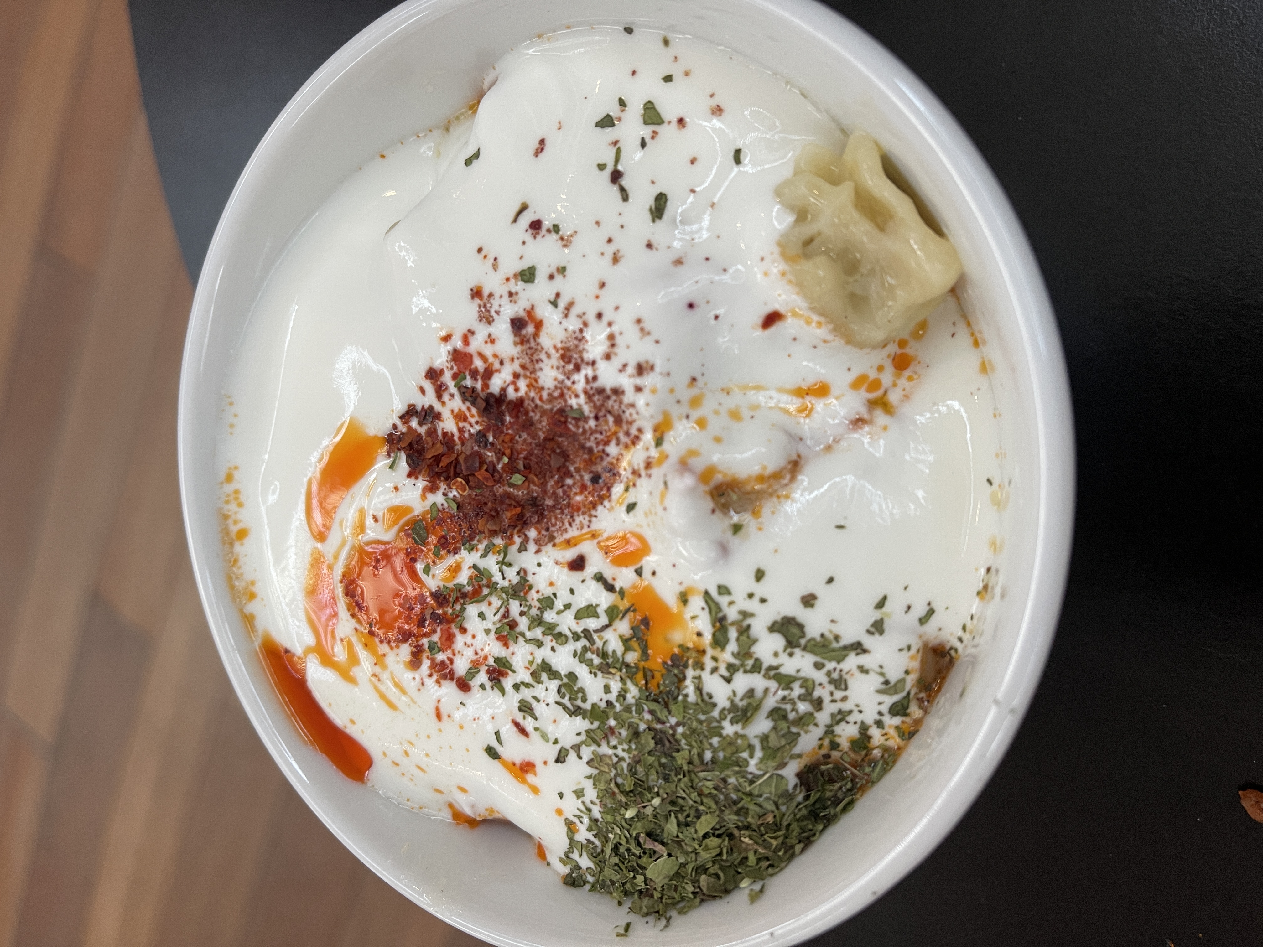 パスタの上に熱いヨーグルト。