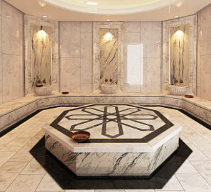 ハマムの室内は蒸気が充満し、温度が50度に近いです。