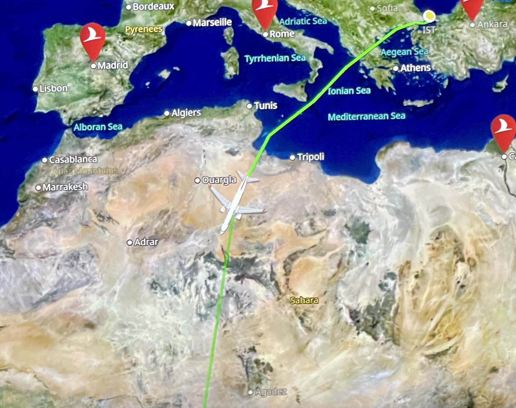 サハラ砂漠の上空を通ります。